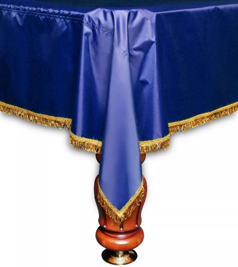 У нас вы можете приобрести чехол на бильярдный стол, его размер - 12 футов. Это влагостойкое покрытие, которое не позволит влаге и пыли скапливаться на бильярдном столе. Покрывало приятного синего цвета, такой цвет отлично впишется в любую бильярдную комнату, а по краям оно украшено желтой бахромой. Это прекрасный вариант для любого бильярдного помещения, как классического, так и выполненного в другом стиле. Изготовлено покрывало из такого материала, как нейлон. Это влагостойкое покрытие, которое не пропускает через себя пыль и влагу.