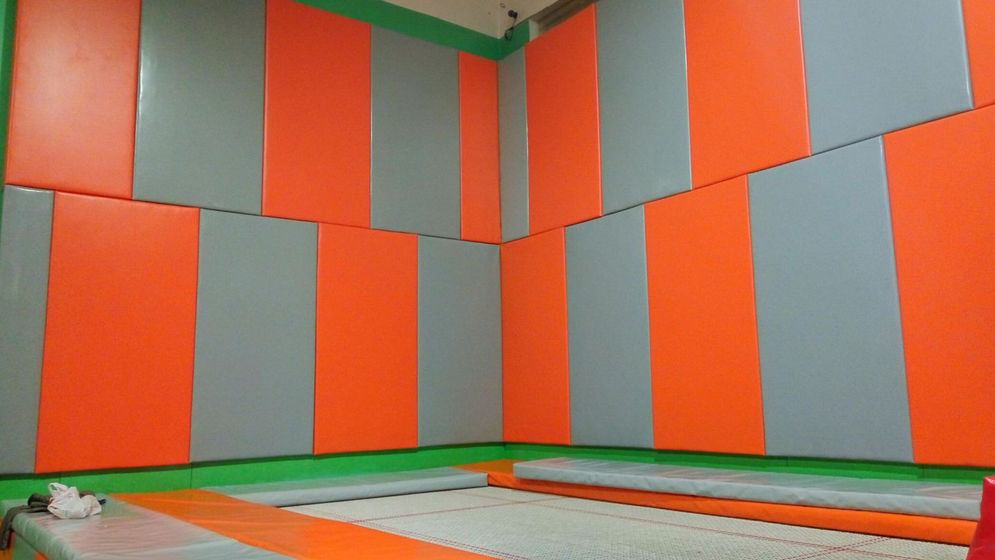 - Верх – прочная тентовая ткань, наполнитель из НПЭ ( несшитый пенополиэтилен) плотностью 120кг/м2. Он обеспечивает мягкую защиту при соприкосновении со стенами в процессе занятий или игр.