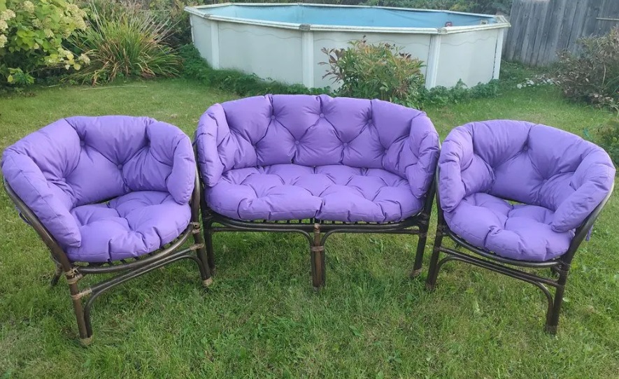 У нас вы можете приобрести подушки, предназначенные для комплекта мебели Багама, в комплект входят подушки, предназначенные для двух кресел. В данном комплекте вы найдёте четыре подушки, спинка и сидение являются отдельными элементами. Для того, чтобы изготавливать такие подушки, мы используем мебельные ткани, имеющие разные фактуры и цвета. Благодаря завязкам обеспечивается очень прочное и надёжное крепление таких подушек к мебели. В качестве наполнителя используется поролоновая крошка, изделия простеганы при помощи пуговиц. Такие подушки подойдут для кресел, имеющих стандартные параметры.