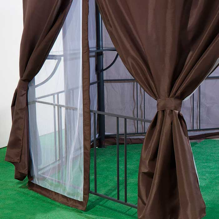 Хотим предложить вам приобрести такое изделие, как комплект для шестиугольного шатра. Данный комплект выполнен в коричневом цвете. В нём находится крыша-тент с клапаном для проветривания, плотные шторы, а также москитная сетка, которая защищает от насекомых. Это наилучший вариант в том случае, если вы хотите сделать свой отдых более комфортным. Комплект защитит вас от солнечных лучей, ветра, дождя, насекомых. Подойдёт комплект для размеров шатра 1,75 х 1,75 х 2,75 м. Крыша изготовлена из полиэстера с плотностью 160 г, а боковые стенки из полиэстера плотностью 140 г с сеткой.