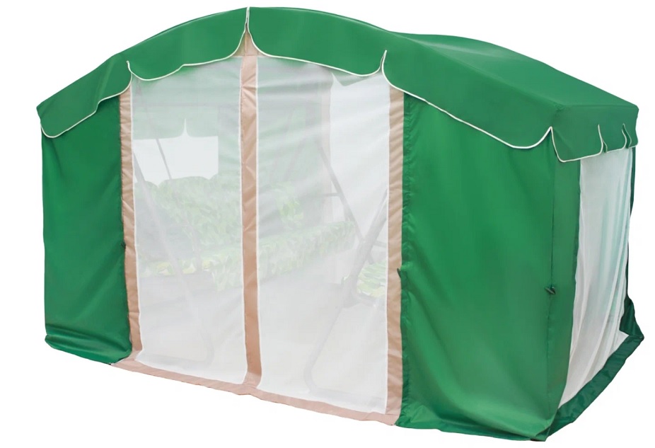 Тент, предназначенный для садовых качелей отлично может защитить от осадков. Это очень важно, так как краска на металлических частях качелей может трескаться и облазить, а металл во время контакта с влагой подвергается воздействию коррозии. Повреждается лакокрасочное покрытие из-за ультрафиолетовых лучей, в данном случае краска начинает шелушиться и отпадать, а цвет будет не таким ярким. Кроме того, выгорать могут и мягкие элементы, они быстро теряют свой презентабельный внешний вид. Именно из-за этого нужно использовать тент, предназначенный для садовых качелей. Кроме того, иногда в комплекте с таким тентом идёт москитная сетка, которая дополнительно сможет защитить вас от надоедливых насекомых. , Абсолютно все качели, которые дополнены таким тентом, обретают очень привлекательный внешний вид. Крыша может быть изготовлена из разных материалов, кроме того, она может иметь разные размеры и цвета. Помните о том, что мы также занимаемся изготовлением продукции на заказ.