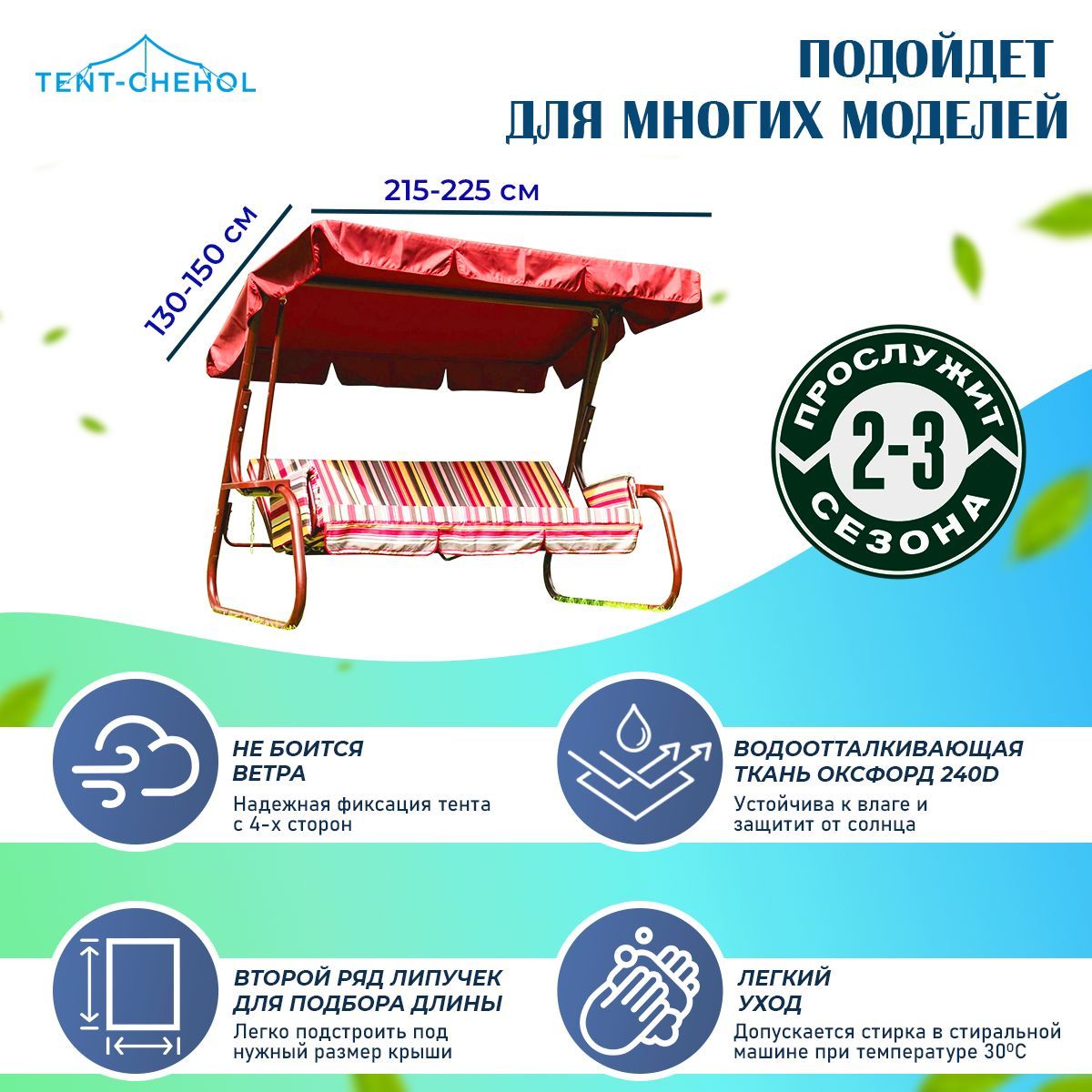 Универсальный тент для садовых качелей, красный, длина 210-225, ширина 130-150 д
