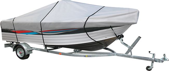 Тент для лодки крепится капроновым шнуром диаметром 5 мм, который вшит по периметру тента. Это позволяет плотно прижать тент к орту лодки, защищая ее от влаги и солнца. Дополнительно к тенту пришиты капроновые стропы длиной 20 см и шириной 25 мм, которые обеспечивают надежное крепление и усиленную защиту на выступающих местах. Концы строп можно затянуть через пряжку и крепить к раме прицепа или проводить под лодкой от пряжки до пряжки, образуя динную.